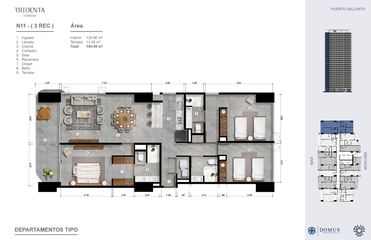 Tridenta Towers es un nuevo y exquisito desarrollo de condominios en Puerto Vallarta que ofrece una combinación excepcional de diseño moderno, amplios espacios habitables y vistas impresionantes, todo mientras está perfectamente posicionado tanto para un estilo de vida lujoso como para una inversión inteligente.